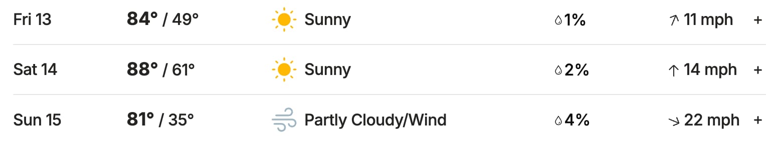Sunday stays warm but turns a little breezy, with partly cloudy skies and winds picking up into the afternoon. Temperatures should still reach the low 80s, but the stronger wind may make lightweight outdoor setups a bit lively.